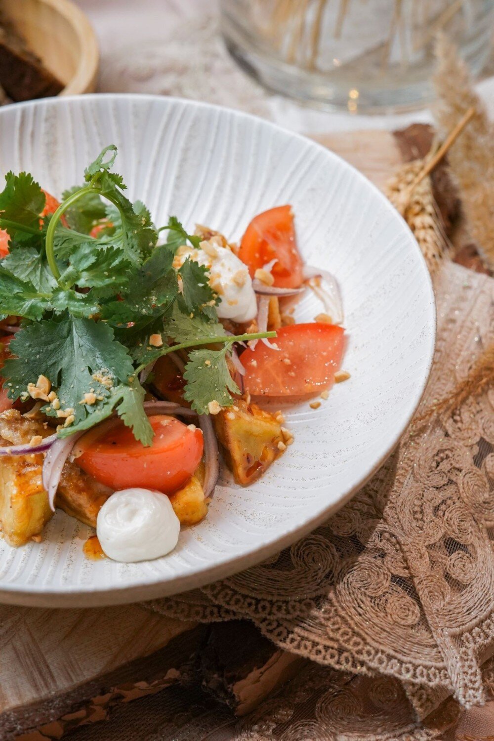 Свежие спелые томаты сочетаются с хрустящими баклажанами, прожаренными до золотистой корочки. Лёгкое и аппетитное блюдо, насыщенное вкусом и яркими ароматами