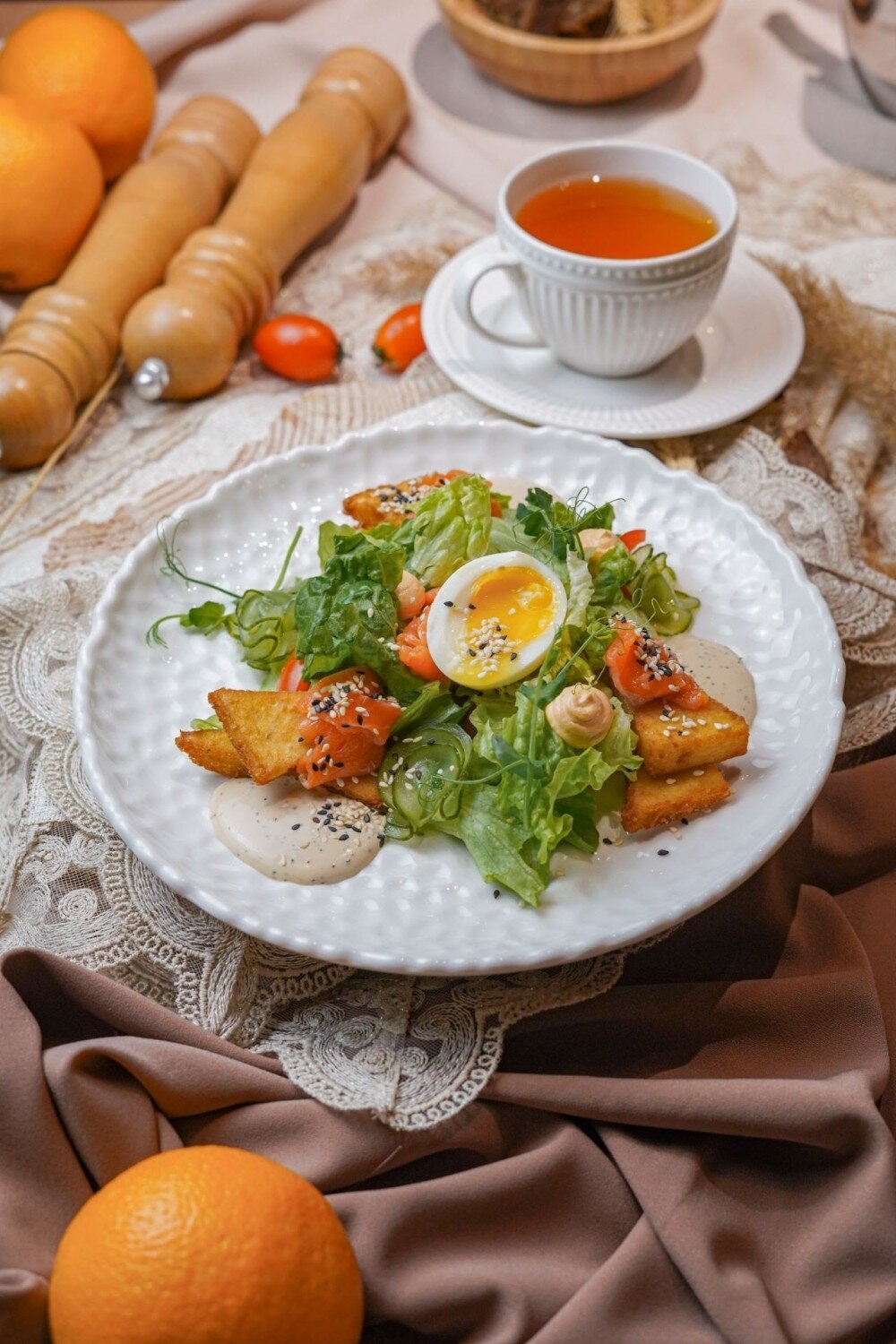 Тёплые хрустящие драники в гармонии с сочной форелью и богатым ореховым соусом. Вкусное и сытное сочетание для любителей насыщенных и оригинальных блюд
