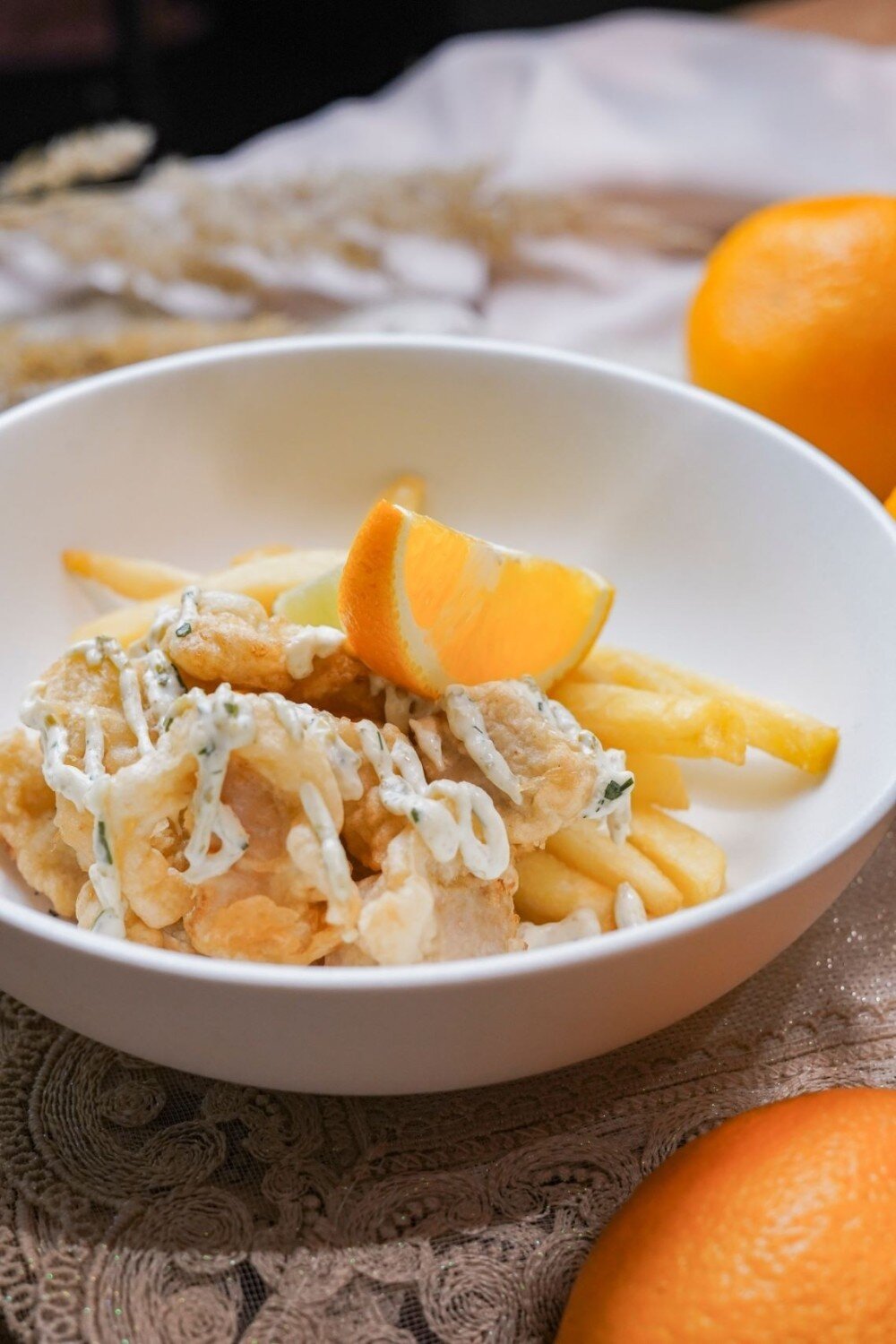 Нежные куски плотной белой рыбы, обжаренные до золотистой корочки и подаваемые с хрустящим картофелем фри. В составе классического соуса ремулад — сливочный майонез с каперсами, корнишонами и свежими травами, идеально дополняющий блюдо и придающий ему яркий морской вкус