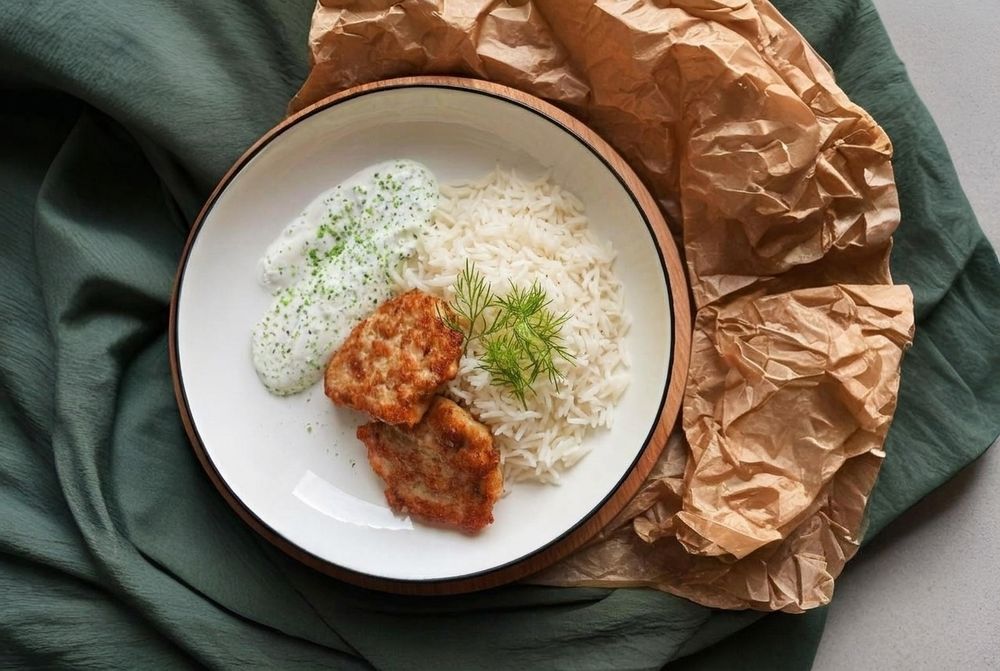 Рубленые котлетки из рыбы с рисом и соусом ремулад