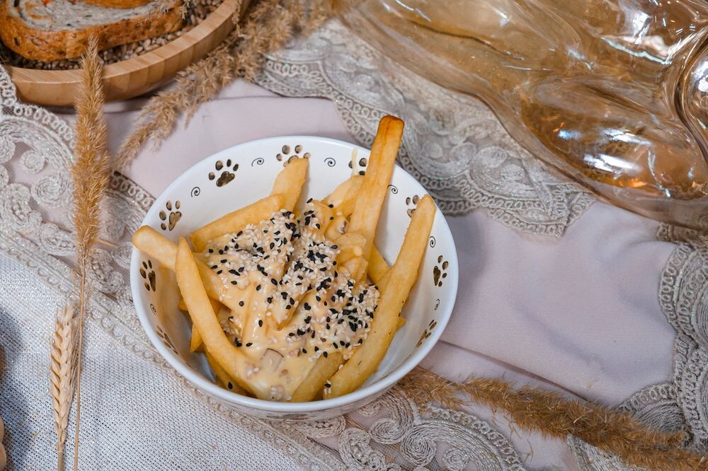Картофель фри с беконом и сырным соусом