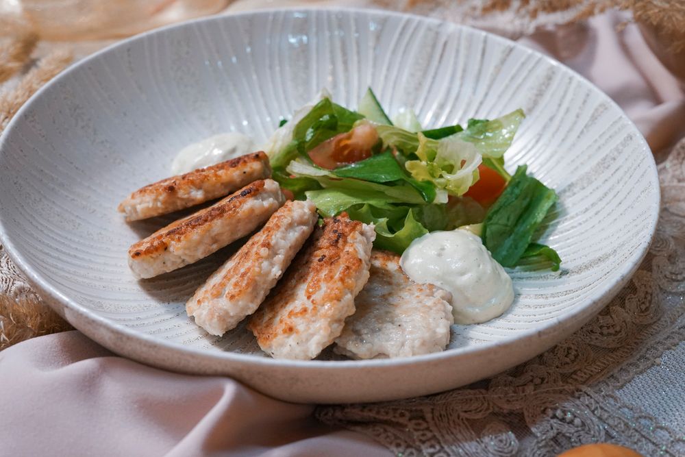 Мягкие и сочные куриные биточки, поданные со свежими овощами и сметанным соусом. Идеальное сочетание нежного мяса и насыщенного соуса для сытного и аппетитного обеда или ужина