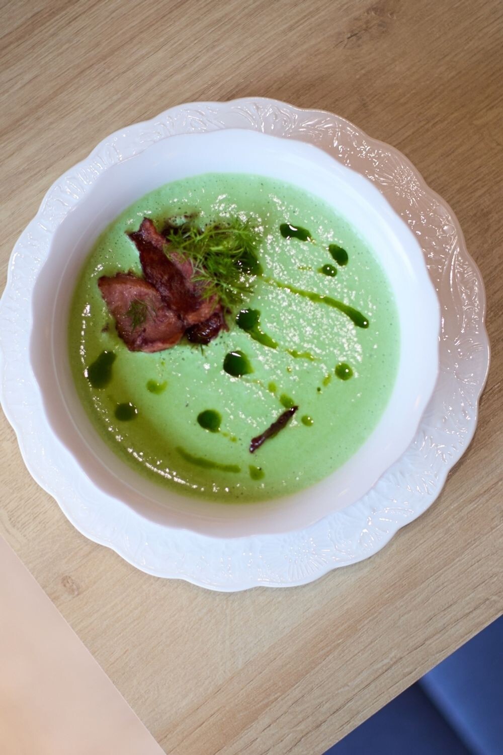 Крем-суп из брокколи с хрустящей ветчиной