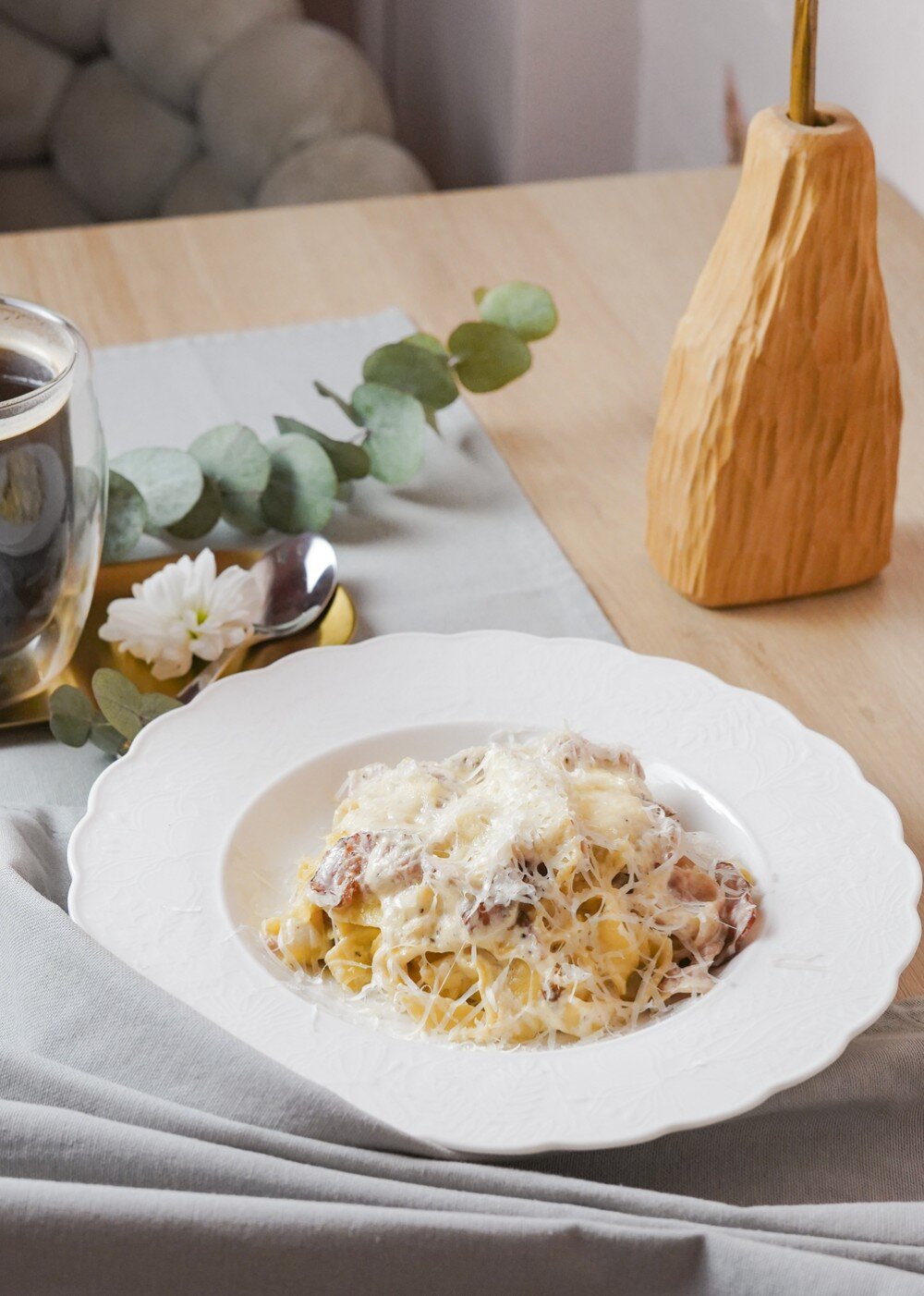 Карбонара с копченой грудинкой