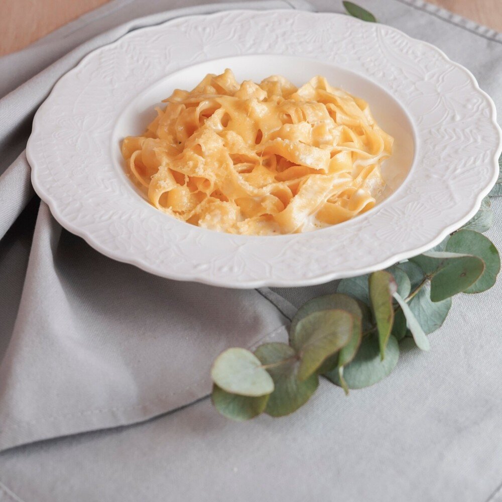 Фетучини / сырный соус / сыр