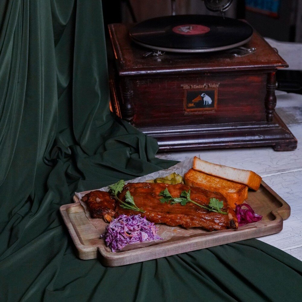 Невероятно нежные свиные ребра, томленные при низкой температуре с добавлением свежих апельсинов и ароматных трав (розмарин, тимьян). Мясо буквально тает во рту, а цитрусовая глазурь придает блюду изысканную сладость и свежесть. Подается с классическим освежающим салатом Коул Слоу, маринованными овощами и ломтиками свежего хлеба