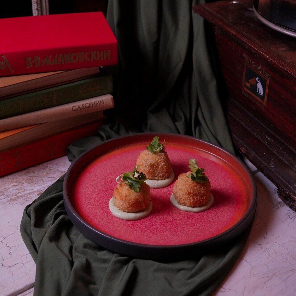 Изысканное сочетание классических вкусов. Мы объединили тающее во рту рваное мясо ребер с нежным картофельным пюре в хрустящей панировке крокета. В качестве яркого сопровождения выступают освежающие соленые огурчики и пикантный васаби-майонез