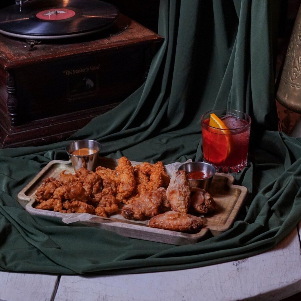 Идеальный выбор на компанию! Классические крылышки Баффало, нежно филе бедра в пивном кляре и стрипсы в панировке из сыра Пармезан. Подается с соус баффало и домашним барбекю